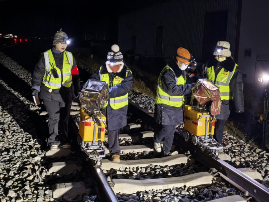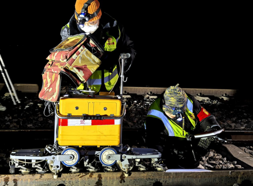 女子探伤班班长傅玲介绍,探伤区间“天窗”时间一般都在傍晚至凌晨,每个“天窗”点,队员们至少要提前1小时到达指定位置,开展设备组装和班前安全教育。