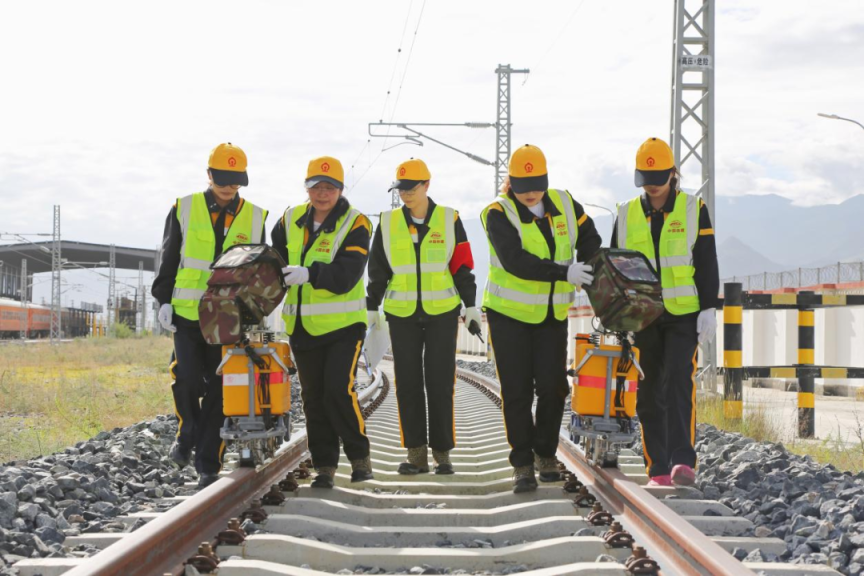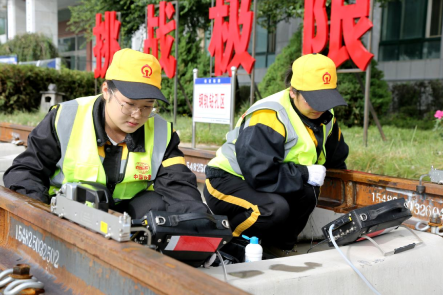 无论是寒风凛冽还是烈日炎炎,女子探伤队员们始终坚守在岗位,沿着两条铁轨一步一步前行,为每一寸钢轨做着细致入微的“体检”,守护着这条经济线、团结线、生态线、幸福线。